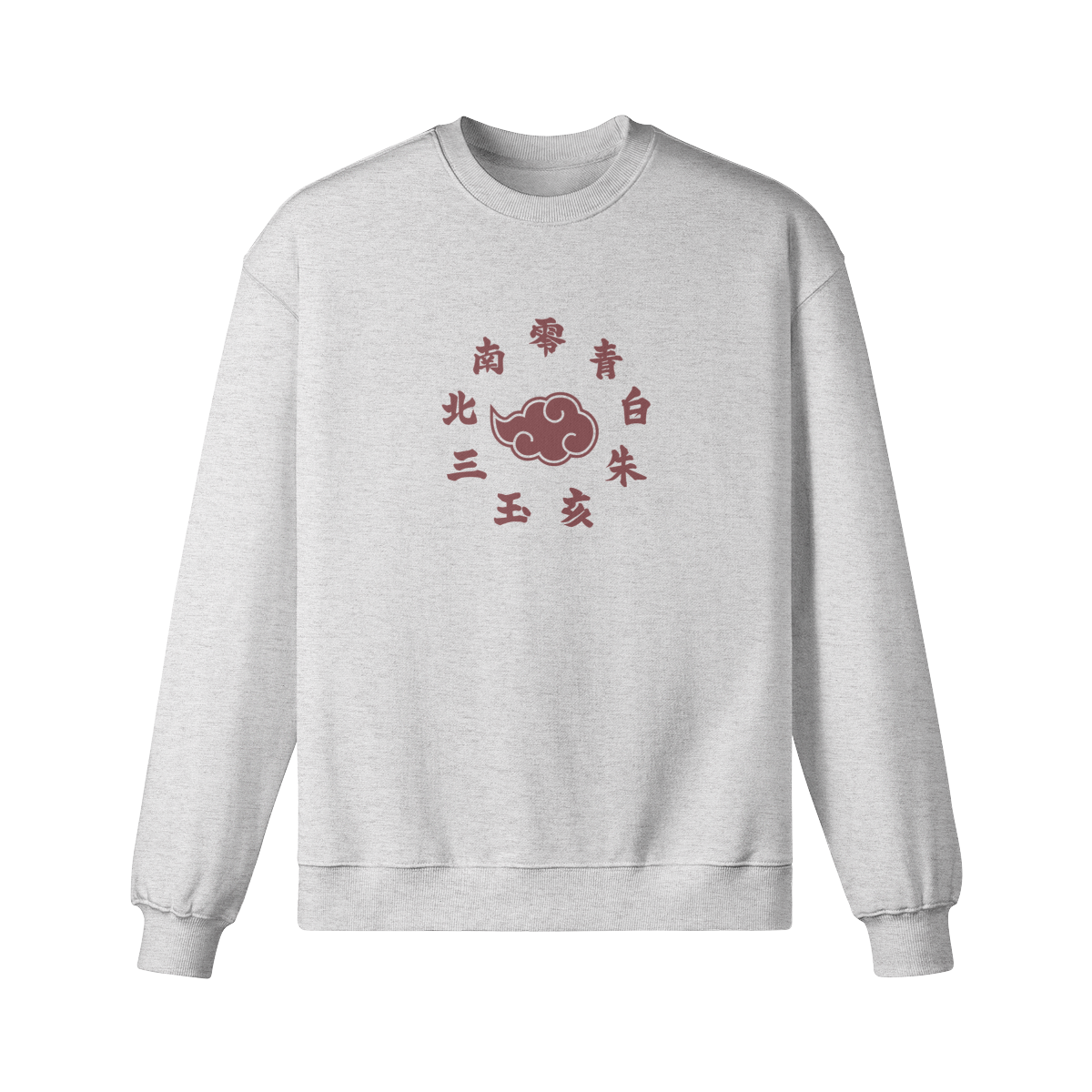 Oversized cotton sweatshirt with a relaxed fit and soft interior feel. Features a centered Akatsuki cloud surrounded by kanji. Minimal, comfortable, and designed for everyday anime wear.