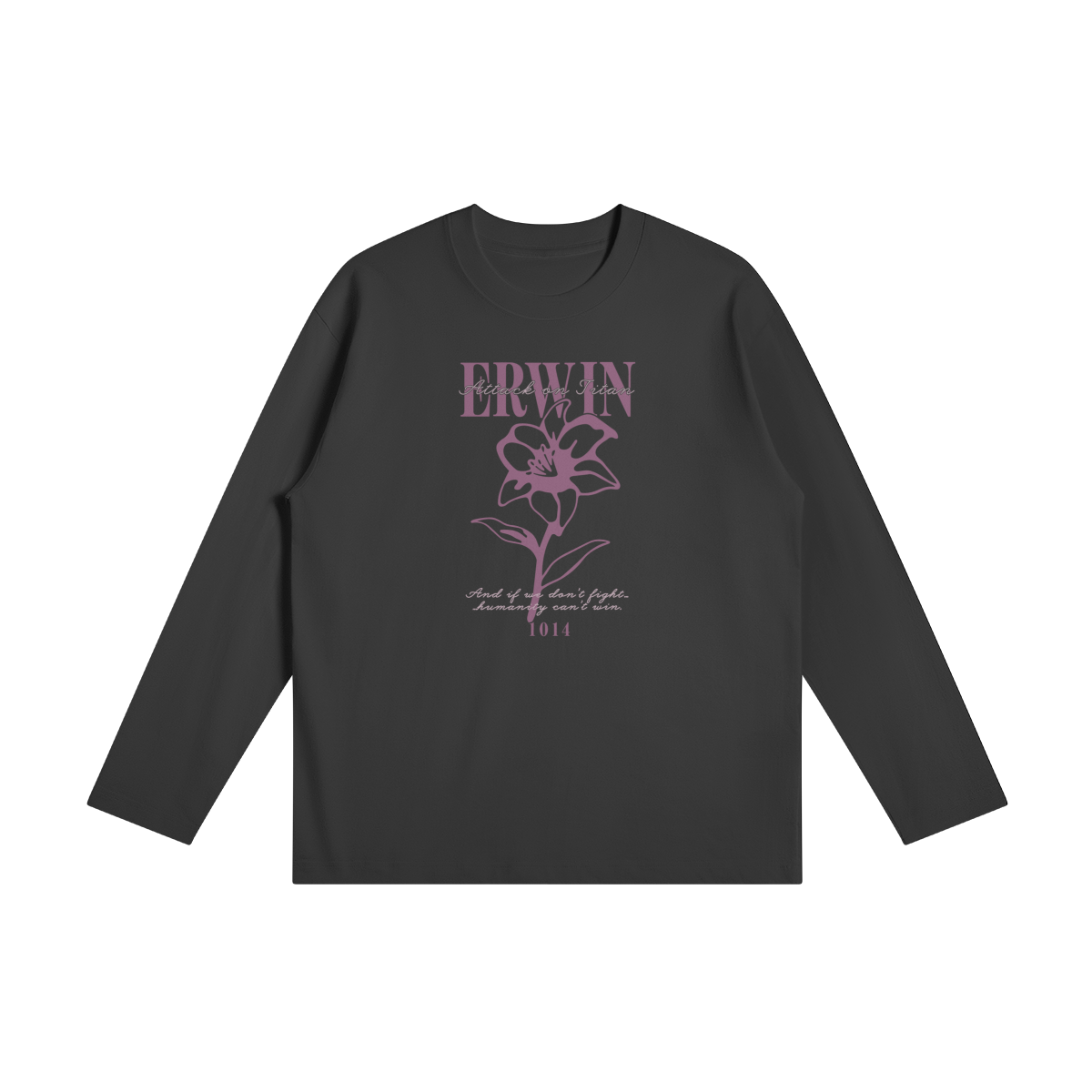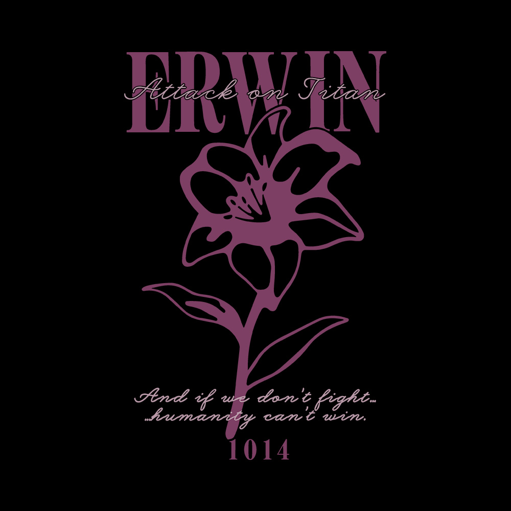 Attack on Titan long sleeve t-shirt inspired by Erwin. Features a muted purple graphic on black with a minimal front print.