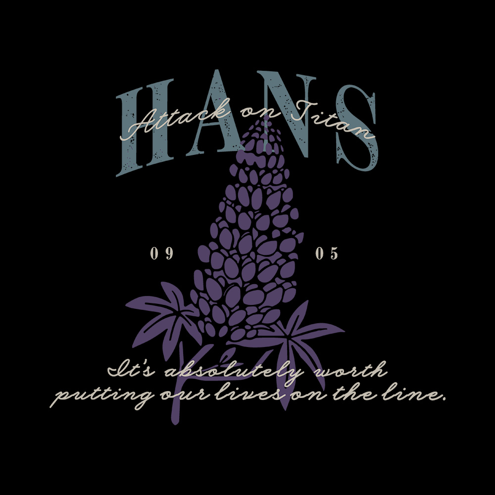 Attack on Titan t-shirt inspired by Hans. Features a muted graphic on black with a minimal front print.