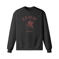 Evangelion cotton sweatshirt featuring the iconic U.N. NERV logo and “TOKYO-III” typography in red,