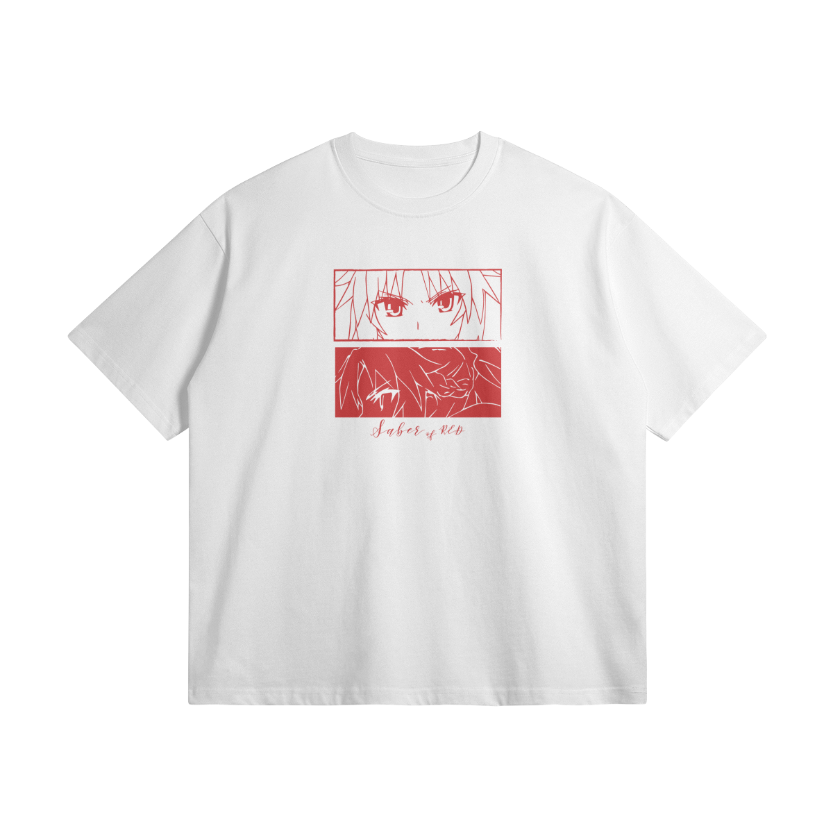 Fate series oversized, heavyweight cotton anime t-shirt featuring a Saber of Red print on the front.