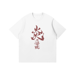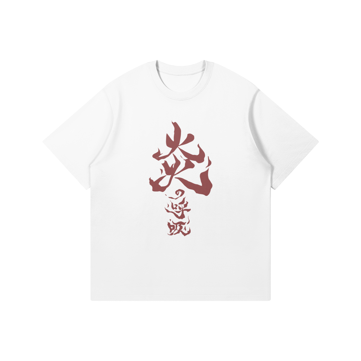 Demon Slayer cotton t-shirt featuring bold Japanese kanji artwork inspired by Kyojuro Rengoku’s legendary Flame Breathing techniques.