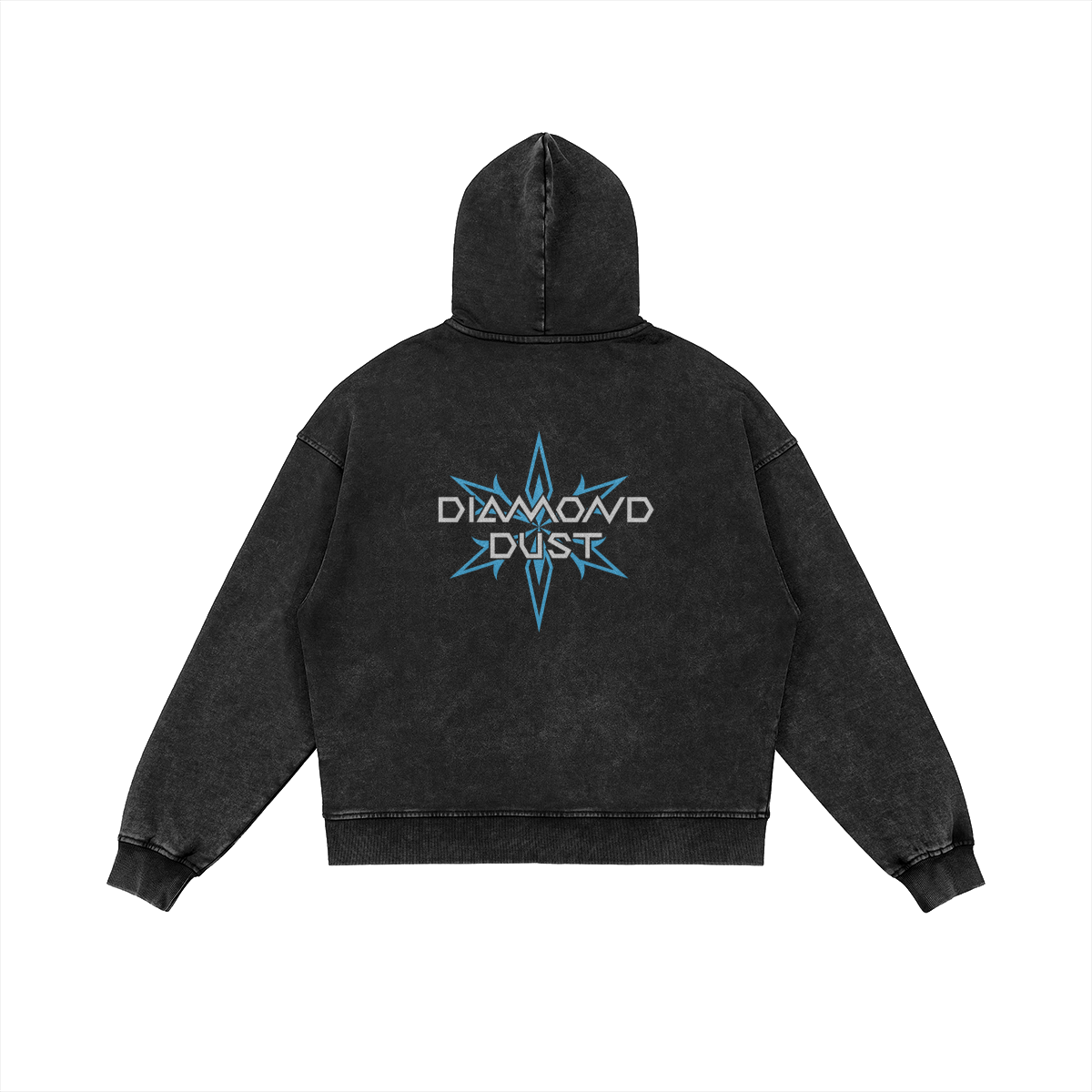 Girls Band Cry snow washed zip hoodie with a a vintage and worn-in feel. Featuring the Diamond Dust logo as a bold back print and minimalist front print.