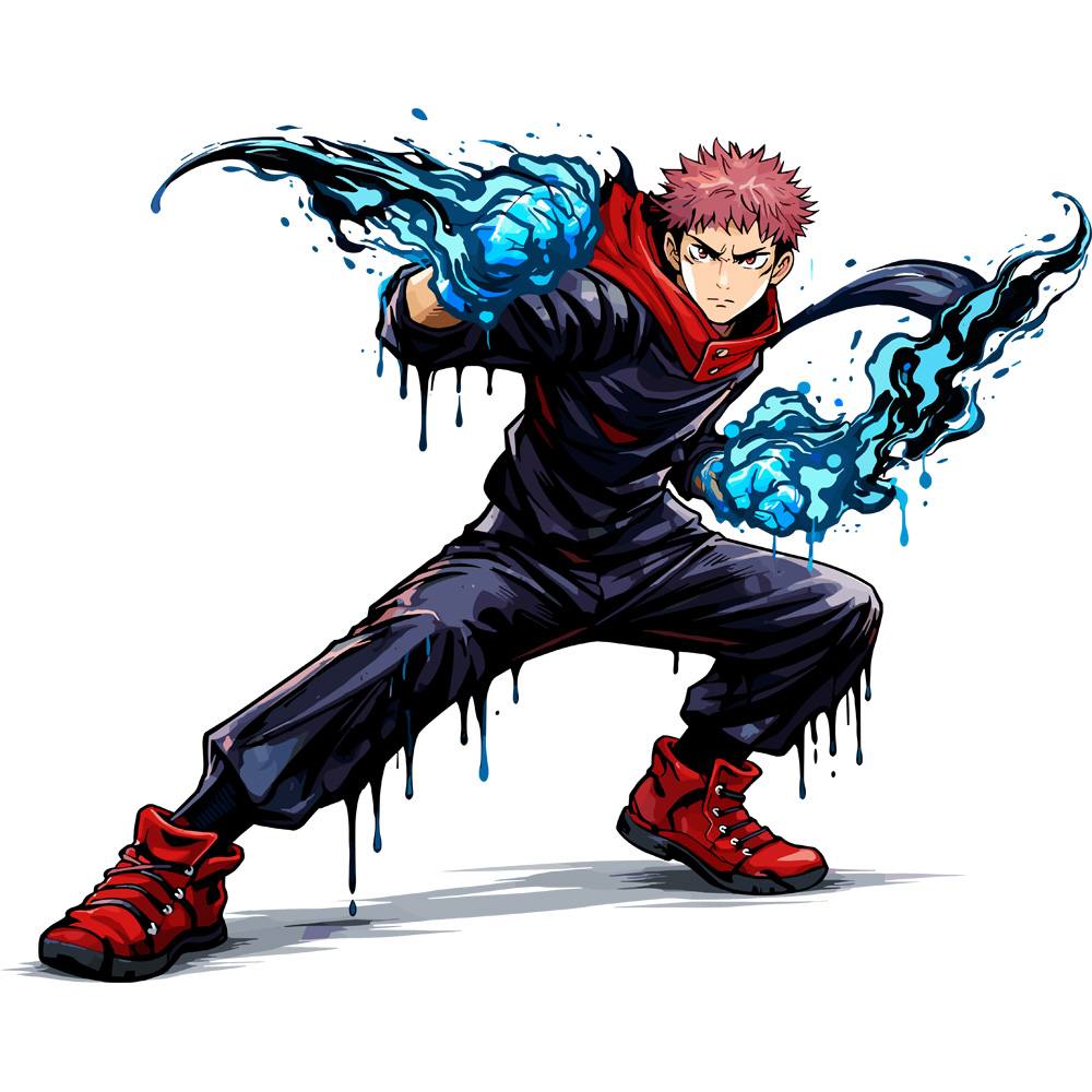 JJK oversized t-shirt featuring extra large character art of Itadori together with his name printed on the back.