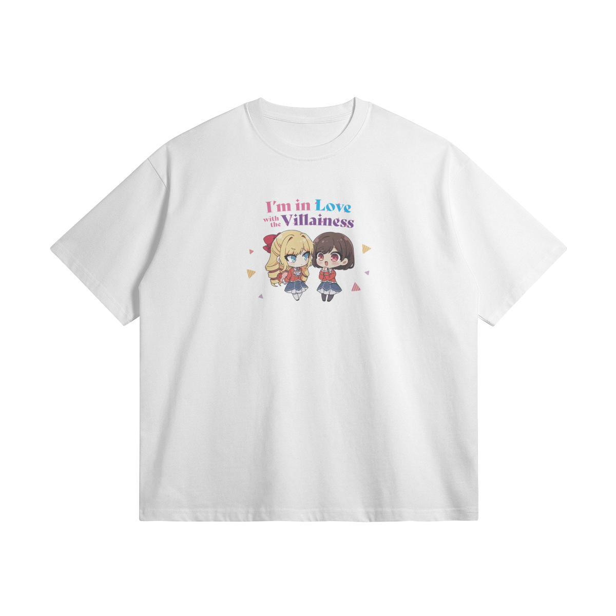 I’m in Love With the Villainess t-shirt featuring artwork of Rae and Claire.