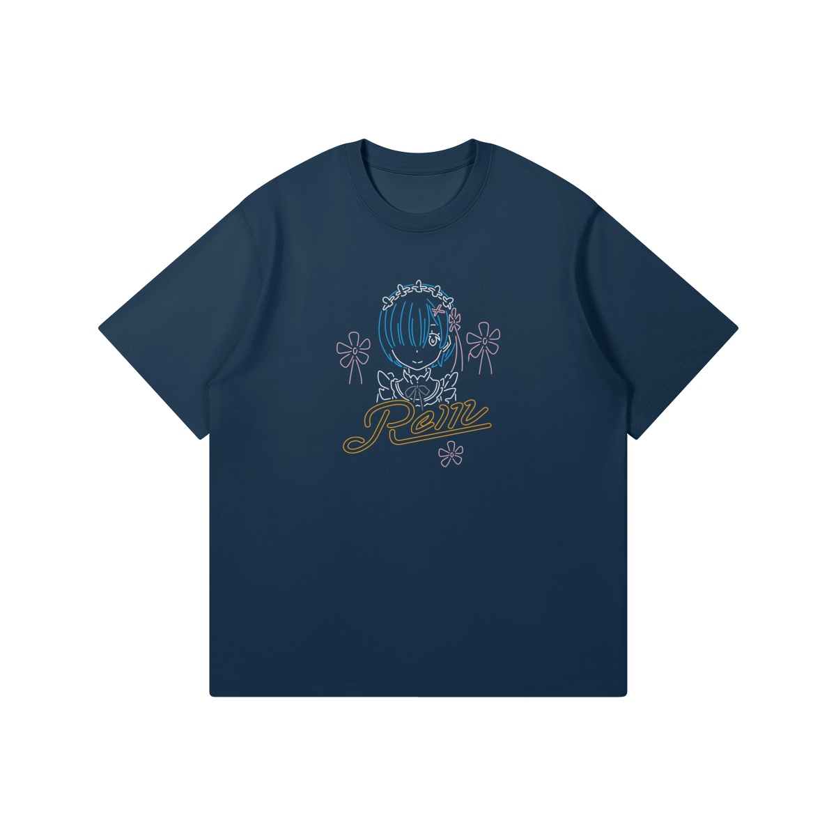 Re:Zero cotton t-shirt featuring a neon-style print of Rem.