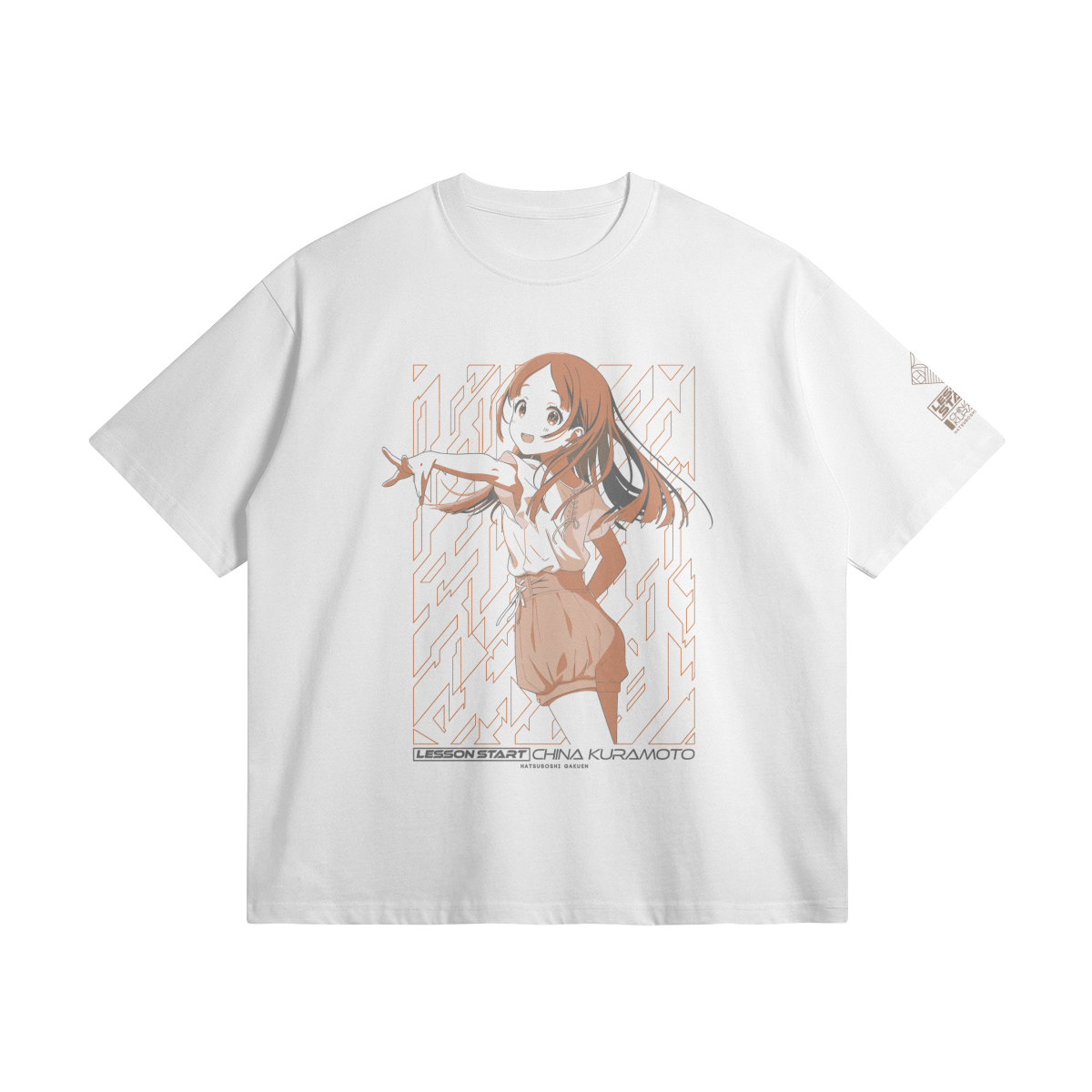The Idolmaster: China Kuramoto oversized heavyweight t-shirt featuring clean anime linework of China Kuramoto.
