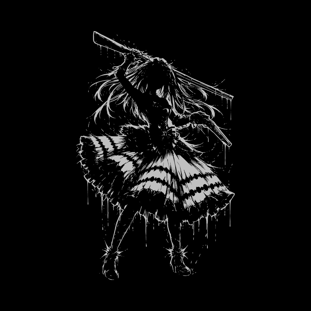 Stand out with this Tokisaki Kurumi t-shirt featuring a vintage-worn finish and bold anime artwork. The wash texture gives every piece a unique look, paired with a sharp front text logo and a striking back silhouette design of Kurumi.