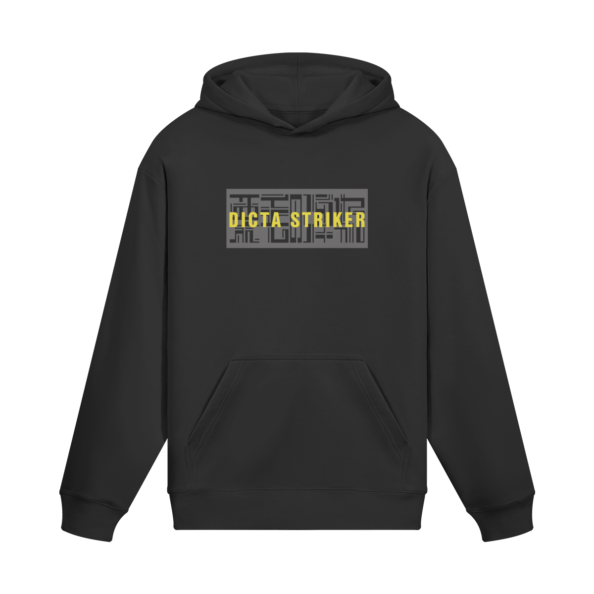 The Dicta Striker hoodie is inspired by Umamusume: Cinderella Gray and features a centered graphic print with a structured maze pattern and bold text detail. The design keeps a clean, balanced layout that works well for everyday wear while still referencing the series.