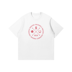 T-shirt featuring a front print inspired by Sakura Chiyono O from Umamusume. The design uses a circular emblem layout with crossed elements, character initials, and sakura detail, creating a clear graphic look while keeping the overall style simple and easy to wear.
