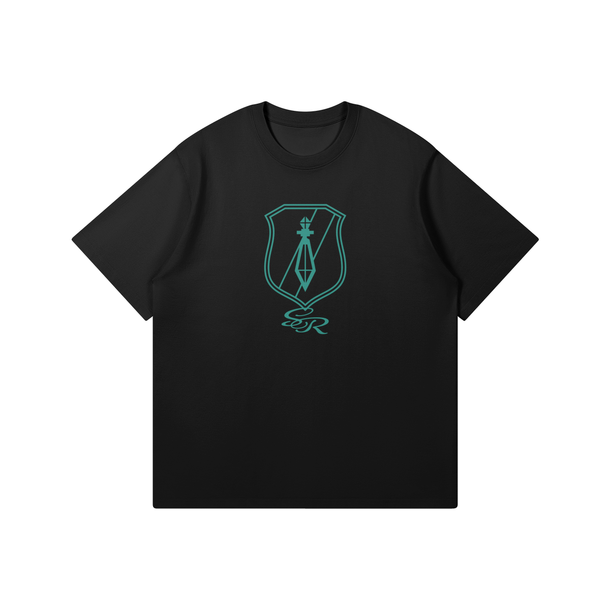 This t-shirt features a front print inspired by Symboli Rudolf from Umamusume. The design uses a crest-style emblem with a central symbol and subtle initials, giving it a simple graphic look while referencing the character in a restrained way.