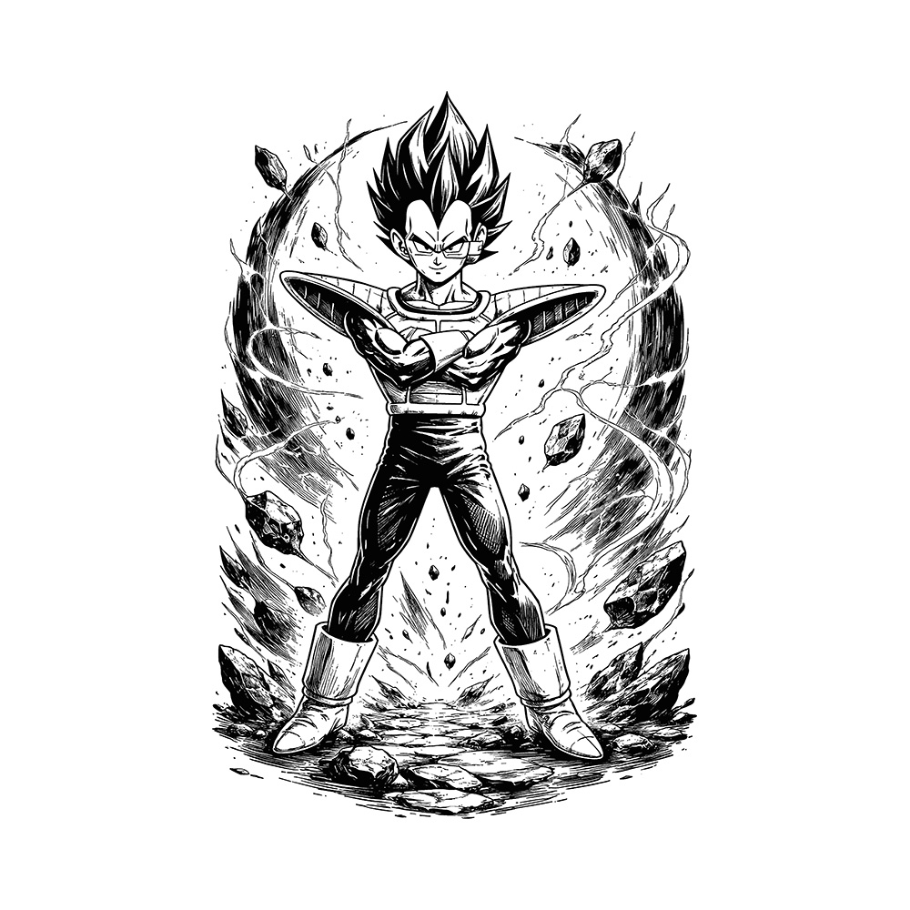 Dragon Ball long sleeved t-shirt featuring artwork of Vegeta. On the left sleeve the text Saiyan Pride is printed.