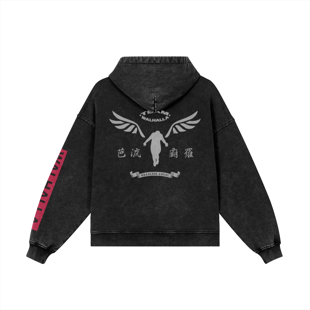 Tokyo Revengers zip hoodie with a Walhalla Headless Angel design on the back and sleeve print.