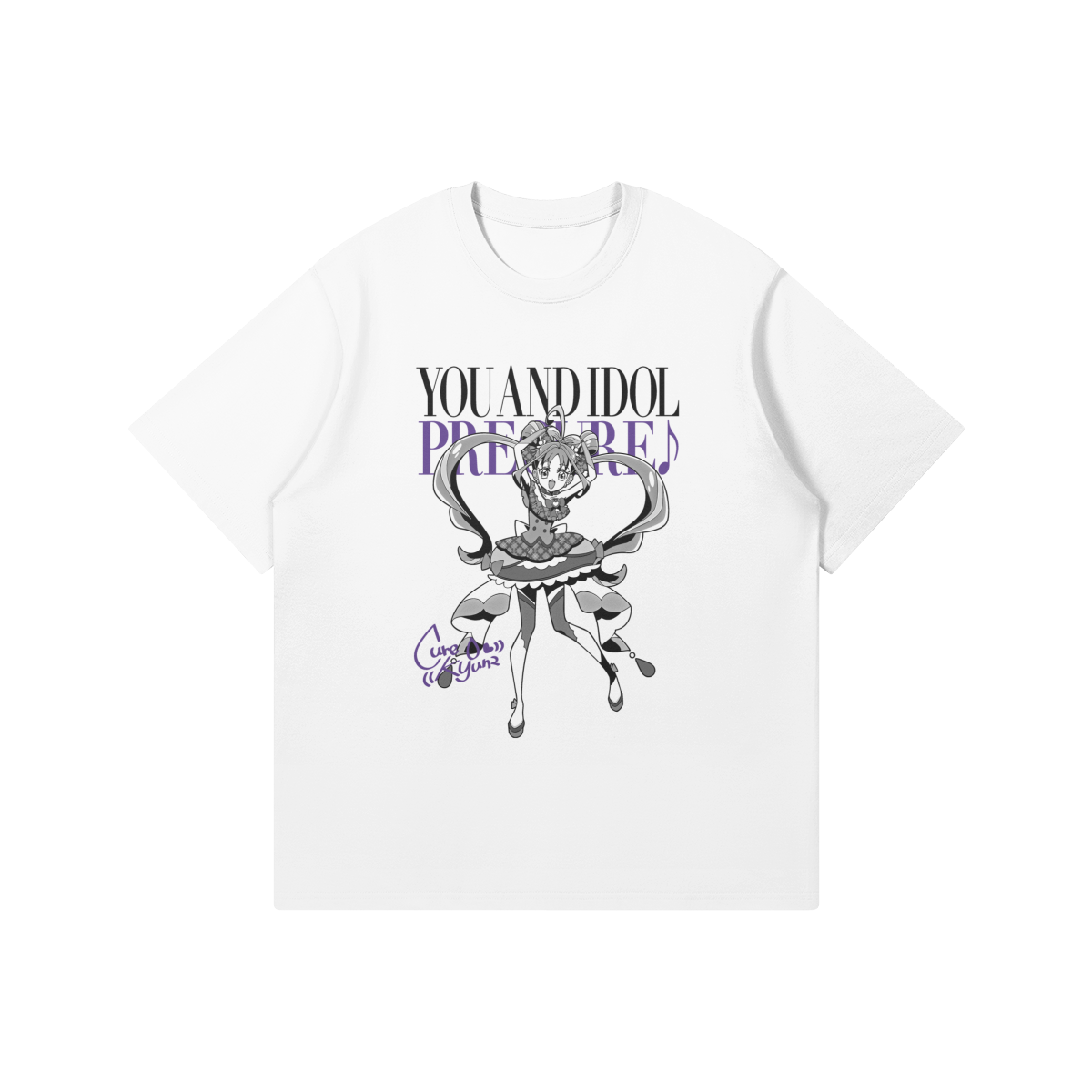 You and Idol Pretty Cure cotton t-shirt featuring artwork of Cure Kyun-Kyun.